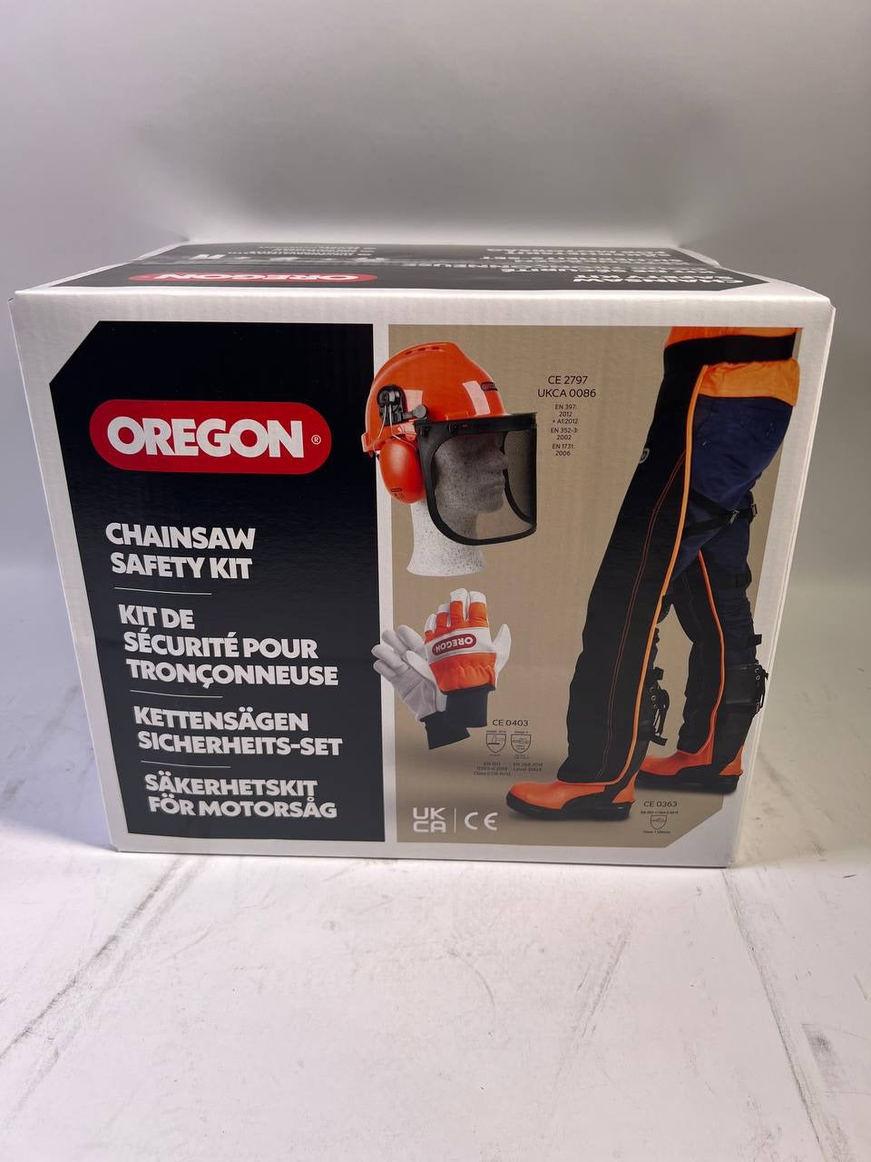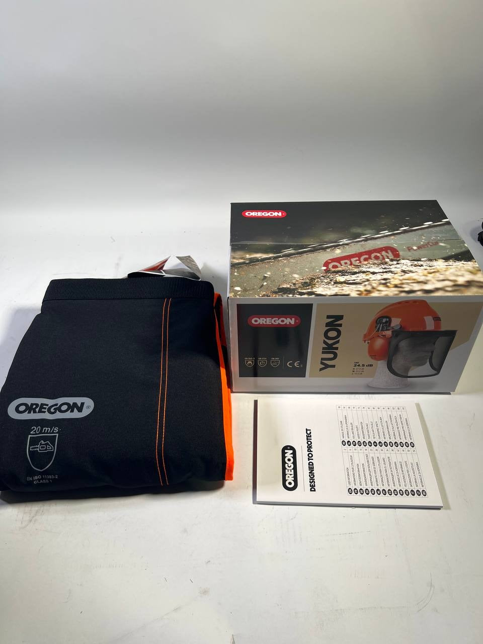 Oregon Kettensägen Schutzausrüstung Set ( 574742A ) mit Schutzhelm / Beinschutz und Handschuhe - Unvollständig