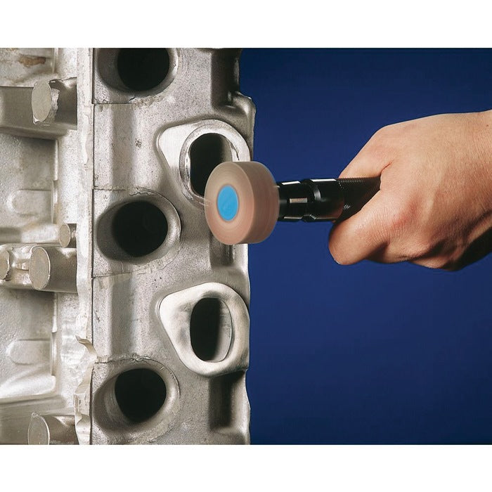 - Vorteile: Gleichbleibend hoher Materialabtrag über die gesamte Standzeit, da stetig neues, aggressives Schleifmittel freigesetzt wird. Optimale Konturenanpassung durch hohe Flexibilität. Stirnseitiger Einsatz sehr eng an Kanten und in Winkeln möglich durch flache Gießkernkonstruktion.