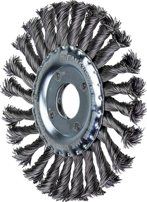 gezopfter Draht · aggressiv arbeitende Bürste · für schwere Bürstarbeiten im Metallbau wie Entzundern, Entrosten, Entgraten, Putzen von Schweißnähten und Entfernen von Kleberresten geeignet · Bohrung 22,2 mm Ø