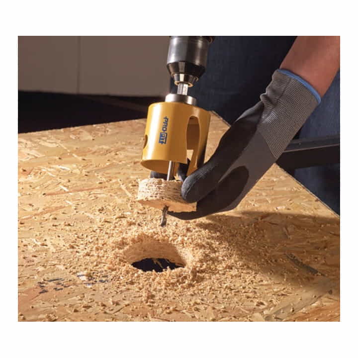 Hartmetallbestückt · für alle Holzwerkstoffe MDF, Sperrholz, Spanplatten, Weichgestein, Kalksandstein, Gipskarton, Zellbeton, Wandfliesen, Laminat, Polyester, PVC, Fieberglas und Gummi · Schnitttiefe 52 mm · Inhalt: je 1 Lochsäge Ø 25, 35, 44, 60, 68 und 80 mm je 1 Click & Drill Zentrierbohrer 184 mm und 186 mm Produktvorteile: · schnelles entfernen des Bohrkerns · extreme Schrägbohrungen · bestehende Lochdurchmesser vergrößern