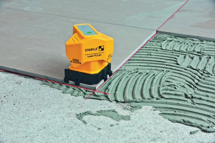 Produktbeschreibung:für Fliesenleger, Bodenleger und Trockenbauer · schnelles und sauberes Arbeiten bei der Verlegung von Fliesen, Parkett, Laminat, Teppich oder PVC · gerade Laserlinien im 90° Winkel mit einem Knopfdruck · Umsteck-Sockel mit Positionierungskrallen für Fliesenverlegung