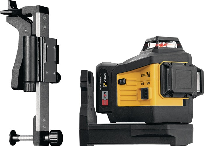 CAS-12-V akkubetriebener Multilinien-Laser mit roten 3 x 360°-Laserlinien · zwei rechtwinklig zueinanderstehende vertikale Linien für präzise Layout-Arbeiten, ein Lot nach oben und unten sowie eine Horizontal-Linie für exakte Höhenübertragungen · direktes Arbeiten auf hellen, feinen Laserlinien bis 30 m · wasser- und staubdicht nach IP65 · inklusive Universalhalterung und Wandhalterung Weitere technische Eigenschaften: · Stromversorgung: 1 x Li-Ion · Arbeitstemperatur: -10 bis +40°C · Ausführung: rote Laserlinie · Betriebsdauer: 28h · Abmessung inkl. Verkaufsverpackung 460mm· Anzahl Batterien 1St· Batterie Typ Li-Ion· Breite 11cm· Breite inkl. Verkaufsverpackung 195mm· CE-Kennzeichen Ja· Gewicht Elektroschrott 0.10g· Gewicht inkl. Verkaufsverpackung 5160g· Höhe 13.50cm· Höhe inkl. Verkaufsverpackung 340mm· Länge 16cm· Länge inkl. Verkaufsverpackung 460mm· Leistung