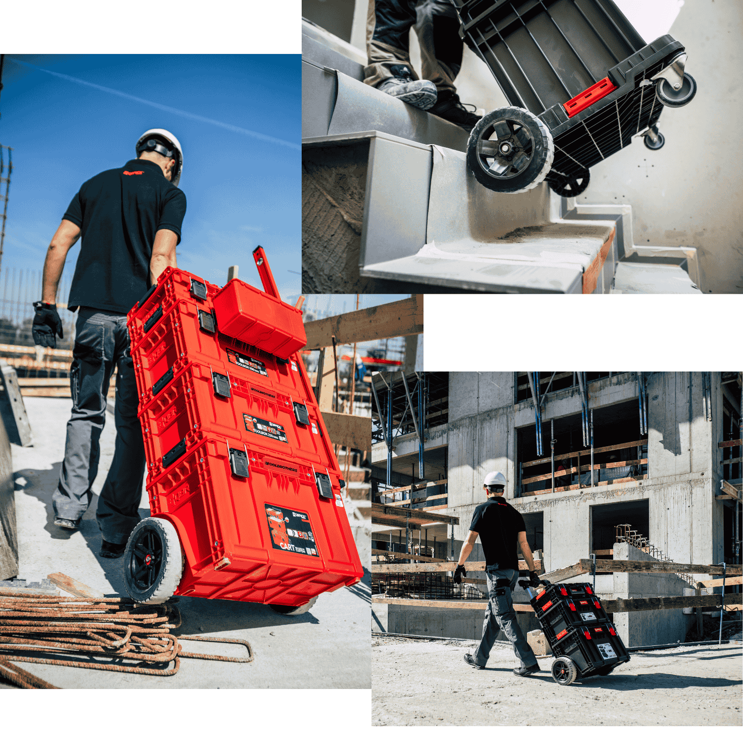 Der Toolbrothers RHINO L Drawer 2 Cart Plus ULTRA ist eine mobile Lösung, die optimalen Transportkomfort mit einer durchdachten Organisation von Werkzeugen kombiniert. Ausgestattet mit großen 9-Zoll-Rädern, die mit einer dicken Gummischicht überzogen sind, bietet der Cart auch unter anspruchsvollen Geländebedingungen eine ausgezeichnete Traktion. Der abnehmbare, teleskopische Doppelgriff und die praktische Fußplattform ermöglichen eine mühelose Manövrierbarkeit, selbst auf engem Raum. Besonderen Komfort bieten die integrierten Schubladen, die sich perfekt zur Aufbewahrung von Kleinwerkzeugen und Zubehör eignen. Sie ermöglichen einen schnellen Zugriff auf wichtige Gegenstände, ohne die gesamte Box öffnen zu müssen. Jede Schublade ist robust konstruiert und mit einem Schutzmechanismus ausgestattet, der ein unbeabsichtigtes Öffnen während des Transports verhindert. Die Schubladen sind zudem mit Unterteilungen versehen, sodass der Stauraum flexibel an individuelle Bedürfnisse angepasst werden kann. Der L Drawer 2 Cart Plus vereint Funktionalität, Mobilität und eine durchdachte Aufbewahrungslösung in einem kompakten Design. Die ULTRA-Linie  ist eine Sonderausgabe der Toolbrothers RHINO Produkte aus ultrahochfestem Kunststoff, der extrem widerstandsfähig gegen mechanische Beschädigungen ist. Aufpralltests bestätigen seine außergewöhnliche Haltbarkeit, auch bei Temperaturen unter 0 °C.