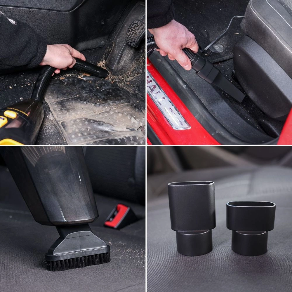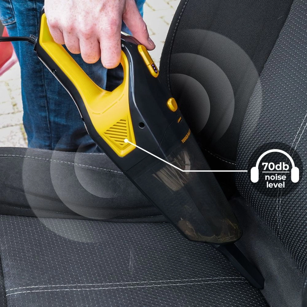 Der kabelgebundene Auto-Handstaubsauger von TOUGH MASTER entfernt Essenskrümel, Tierhaare und andere Abfälle mit seinem leistungsstarken 90 Watt Motor im Handumdrehen. Des Weiteren besitzt der Handstaubsauger ein kompaktes Design und verfügt über eine sehr starke Saugleistung von 6000 PA, welche Ihren Autoinnenraum schmutzfrei halten wird. Zum Verstauen können Sie den Sauger einfach in den Kofferraum legen, sodass Sie ihn immer herausholen können, sobald Sie ihn benötigen. Ausgeliefert wird der Autostaubsauger mit einem herausnehmbaren, effizienten und waschbaren HEPA-Filter, welcher somit wiederverwendbar ist. Darüber hinaus sind ein Schlauch für schwer zugängliche Stellen, drei Reinigungsdüsen, eine Bürste für Teppiche und Polster, ein kleiner Pinsel für beispielsweise Ritzen, sowie eine Tragetasche zum Verstauen und Transportieren des Inhaltes im Lieferumfang mit inbegriffen. Dieser Staubsauger, welcher für die Haus- und Autoreinigung geeignet ist, besitzt ein 4,7 Meter langes Kabel, das lang genug ist, um damit bequem die Rücksitze reinigen zu können, ohne dabei am Kabel ziehen zu müssen. Das Netzkabel ist mit einem Zigarettenanzünder-Stecker versehen, wodurch die Inbetriebnahme des Gerätes direkt über das Auto vorgenommen werden kann und keine zusätzliche Stromquelle benötigt wird. Ein weiterer Vorteil, den der leistungsstarke Handsauger mit sich bringt, ist der sehr niedrige Geräuschpegel von maximal 70 dB, welcher Störungen gegenüber Nachbarn, Tiere oder Passanten vermeidet. Zusammengefasst bringt der TOUGH MASTER Auto Handstaubsauger eine Palette von Vorteilen mit sich, welchen ihn im Preis-Leistungs-Verhältnis sehr gut dar stehen lassen.