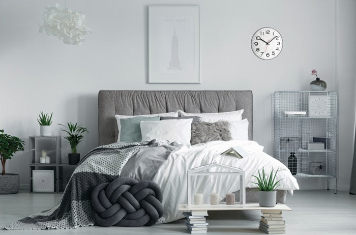 silbernes Kunststoffgehäuse · flaches Gehäuse · Ziffernblatt mit Zahlen · Batteriebetrieb 1,5 V (Batterien nicht im Lieferumfang enthalten)