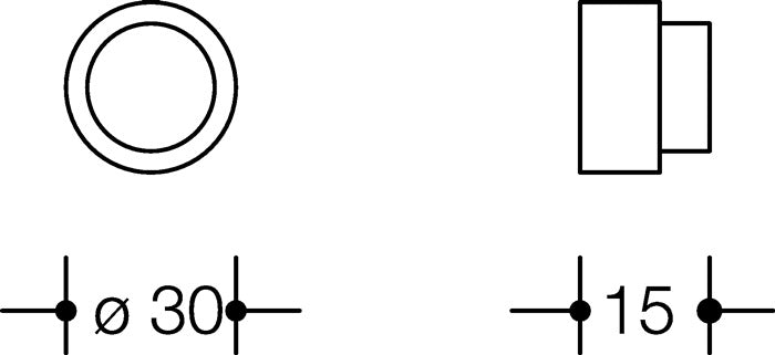 aus Edelstahl (1.4301) · Durchmesser 30 mm, mit schwarzem elastischen Puffer · Diebstahlgeschützt durch verdeckte Verschraubung