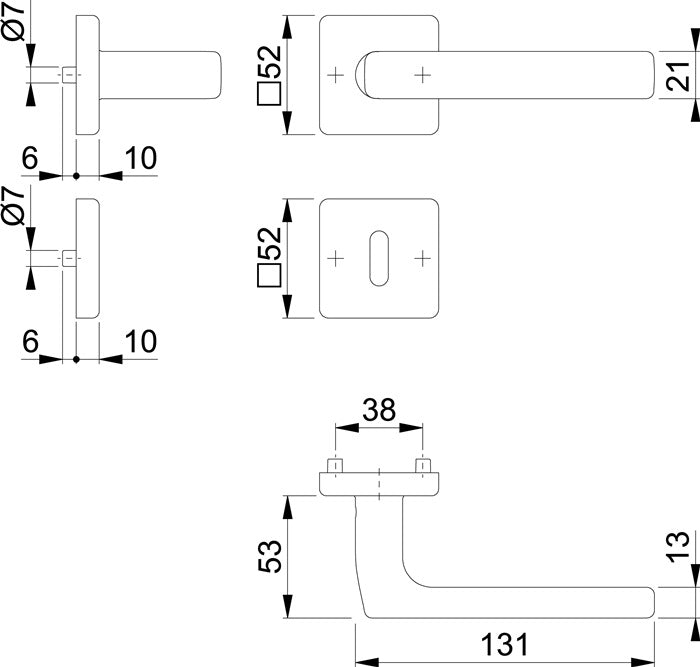 Innentür-Rosetten-Garnitur geprüft nach DIN EN 1906 (Gebrauchs-Kategorie Klasse 3) · Türgriffe mit Schnellstift-Verbindung (8 mm Vierkant) für Türstärke 37-42 mm und Rückholfeder · Rosetten mit Stütznocken unsichtbar verschraubt · Edelstahl matt · Anschlagrichtung DIN links / rechts