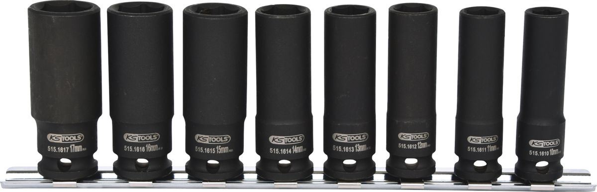 3/8" Sechskant-Kraft-Stecknuss-Satz, lang, 8-tlg · Sechskant-Kraft-Stecknuss-Satz, lang