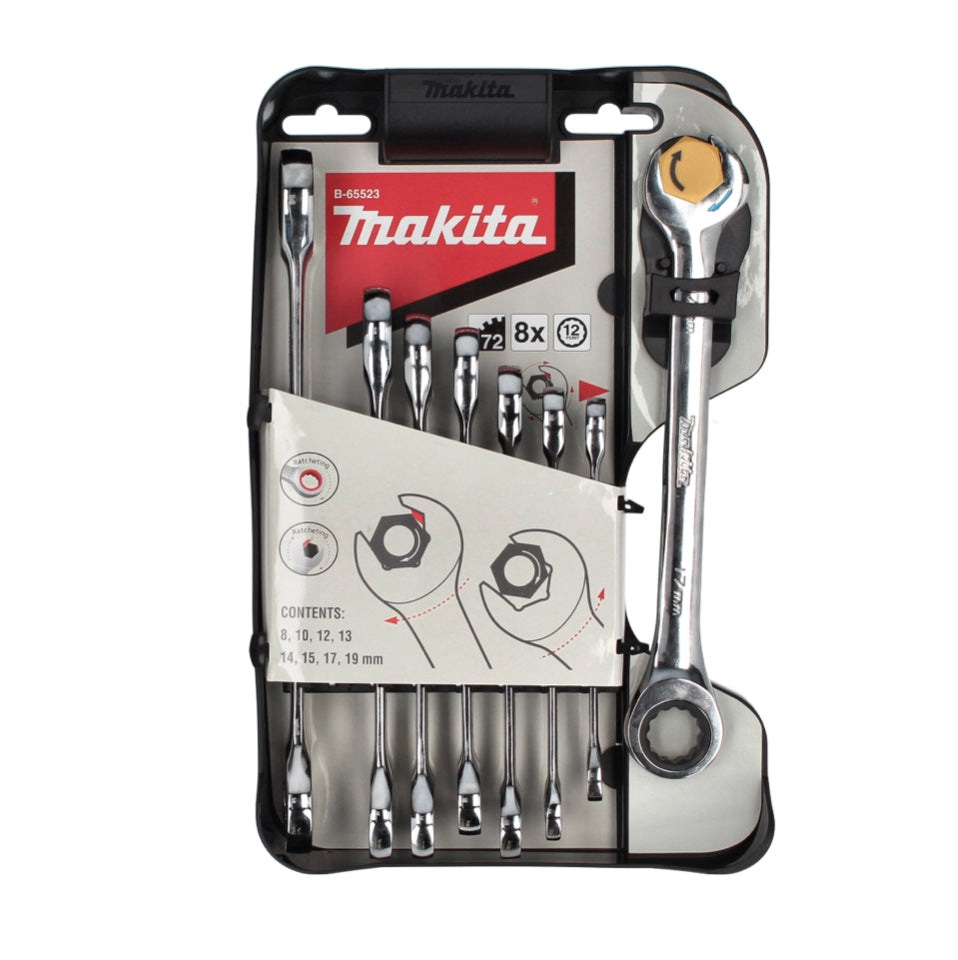 Makita Maulschlüssel Ringratschen Set 8 tlg. 8 - 19 mm ( B-65523 ) Schraubenschlüssel Satz