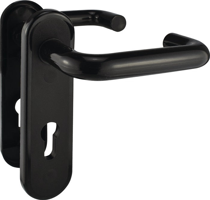 Lever handle set suitable for light metal door locks - distance 72 mm - for door thickness 40-57 mm - - colour black - incl. cover caps - lever handle with fixed pivot bearing