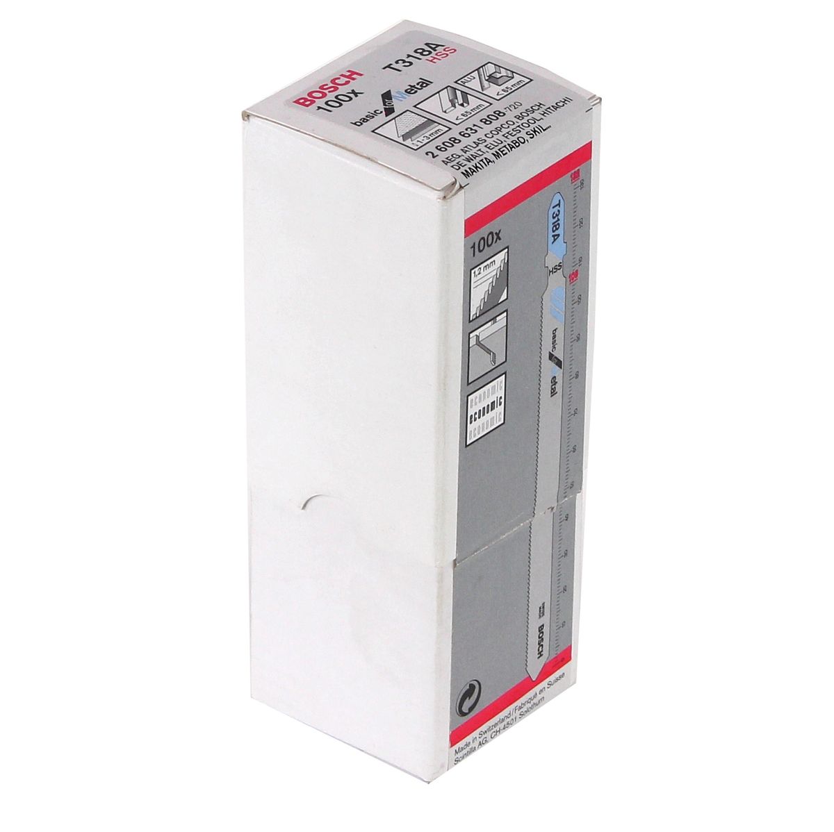 Bosch T 318 A Stichsägeblätter für Metall - 100 Stück, gefräste gewellte Zahnausführung, für Stichsägen mit T-Schaft-Aufnahme