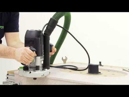 The OF 2200 from Festool is a router which, with its high power of 2200 watts, is suitable for various demanding tasks. The 80 mm routing stroke is impressive when countersinking fittings or routing with routing templates. The torsion-resistant base plate with guide pillars clamped on both sides guarantees high precision and ensures stable support when working. Thanks to the convenient spindle stop with rocker and ratchet principle, the router bit can be changed in a flash without having to move the spanner. The routing depth can be set easily and precisely to an accuracy of 1/10 mm. The quick brake stops the milling cutter in a matter of seconds, ensuring a high level of safety when milling. The MMC Electronic ( Multi-Material-Control Electronic ) guarantees material-compatible working. Replacing the copy ring and soleplate is very easy thanks to the elimination of the mounting tool. Thanks to the chip catcher and the extraction bonnet, dust and chips can be easily extracted when routing edges. The profile router setting is very easy to adjust thanks to the base plate that can be coupled and uncoupled. The 30° offset side stop ensures good ergonomics when working. It can therefore be used for various routing tasks such as rebating, grooving and profiling workpieces, routing large cut-outs, circles and arches with the multi routing template, producing worktop corner joints with the worktop template or routing door seals and edge gears in windows and doors. Festool is a premium manufacturer of power tools, characterised above all by its long tradition and very high quality of workmanship.