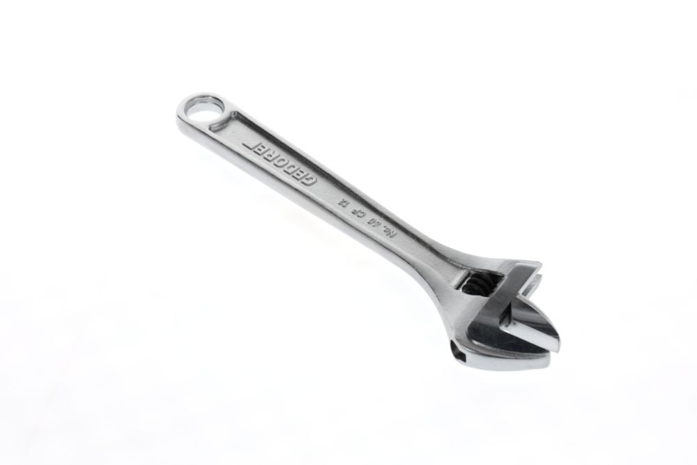 adjustable - CV steel - chrome-plated - polished head - Swedish model - roller with left-hand action - jaw position 15° - with setting/measuring scale on the spanner head - ISO 6787