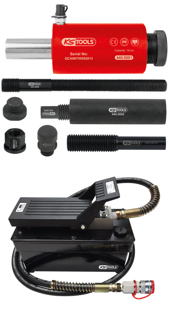 KS TOOLS Hydraulik-Einheit 16t, mit Luft-Hydraulik-Pumpe, 13-tlg ( 440.9991 )