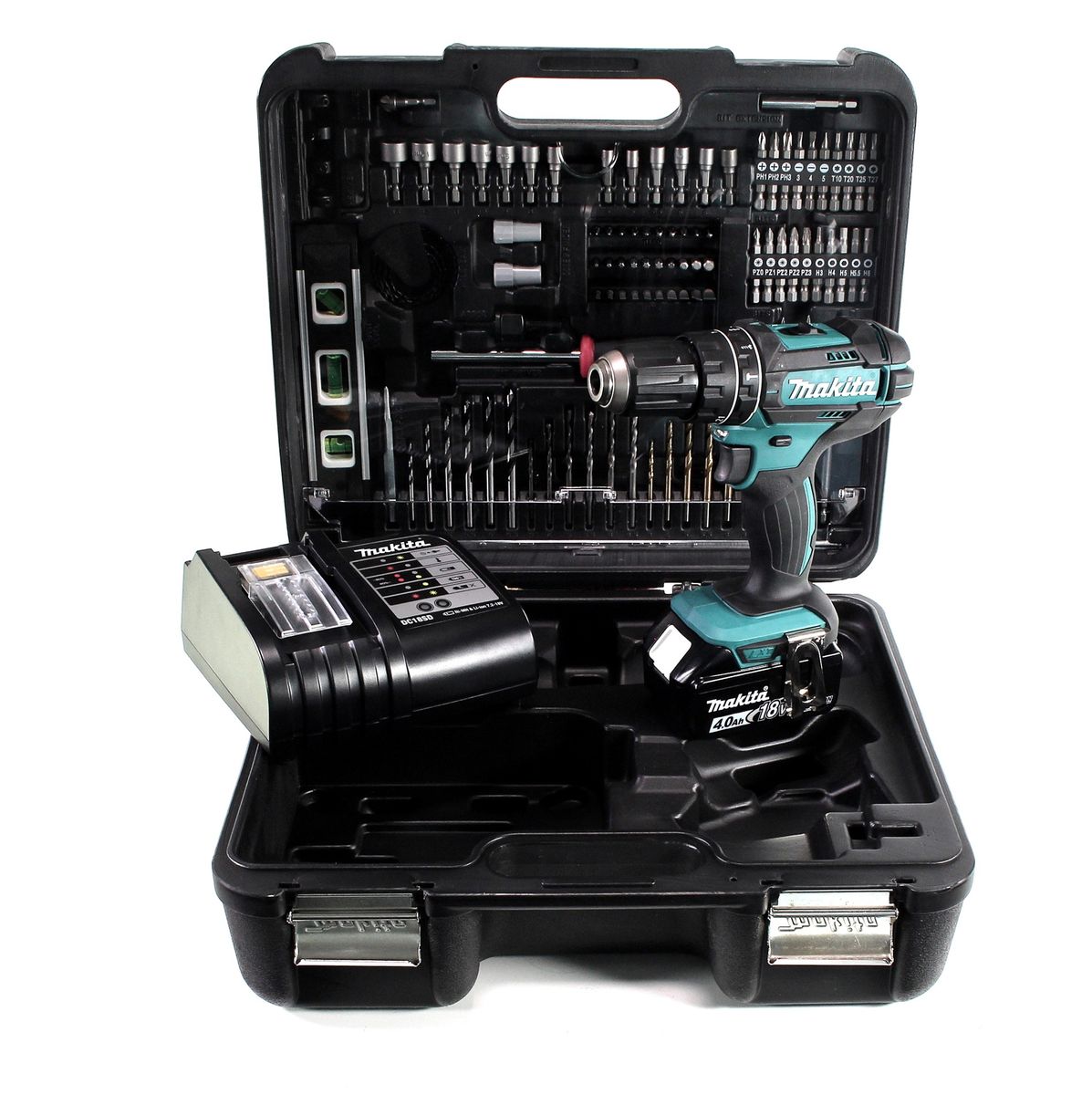 Makita DHP 482 SMTK Akku Schlagbohrschrauber 18 V 62 Nm + 1x Akku 4,0 Ah + Ladegerät + 101 tlg. Zubehörset + Koffer