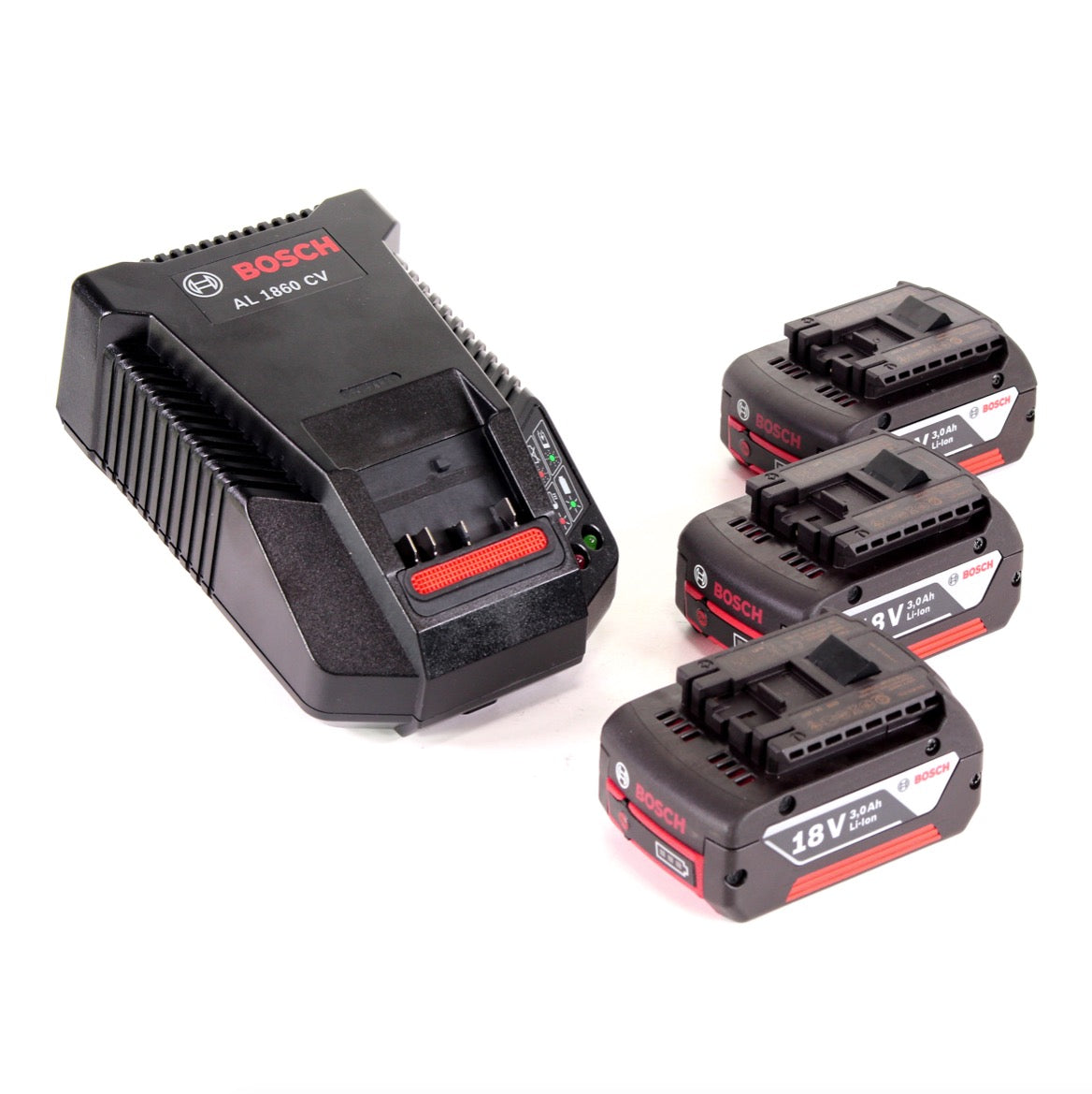 Bosch GSR 18V-28 Professional Taladro atornillador a batería en L-Boxx + 3x Batería GBA 18V 3,0 Ah + Cargador AL 1860 CV
