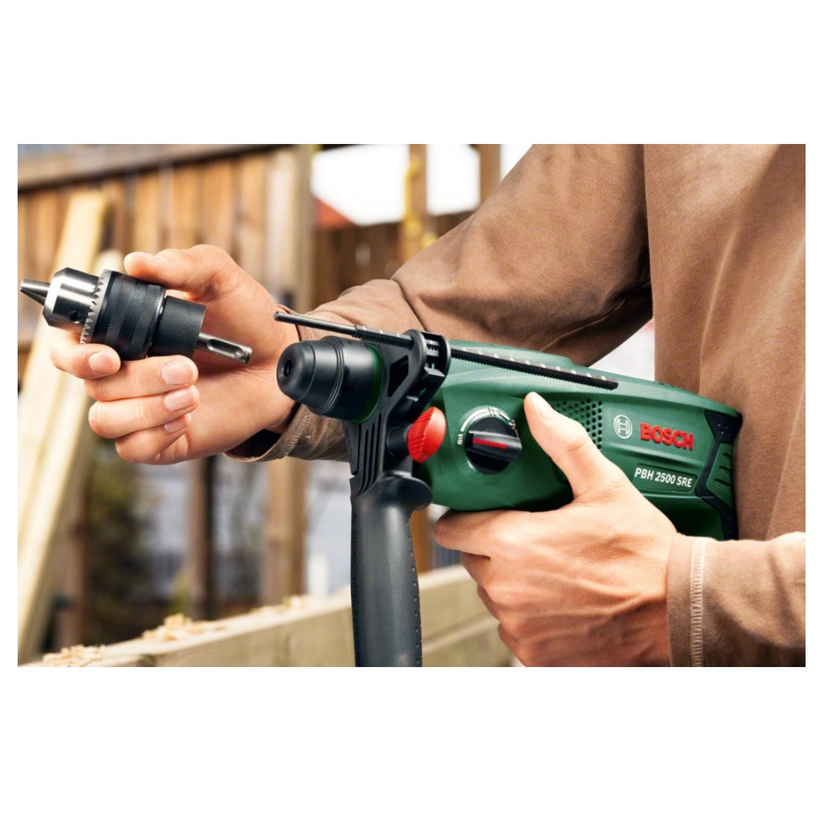 Taladro percutor Bosch DIY PBH 2500 SRE en maletín con juego de brocas SDS-Plus y portabrocas intercambiable (0603344404)