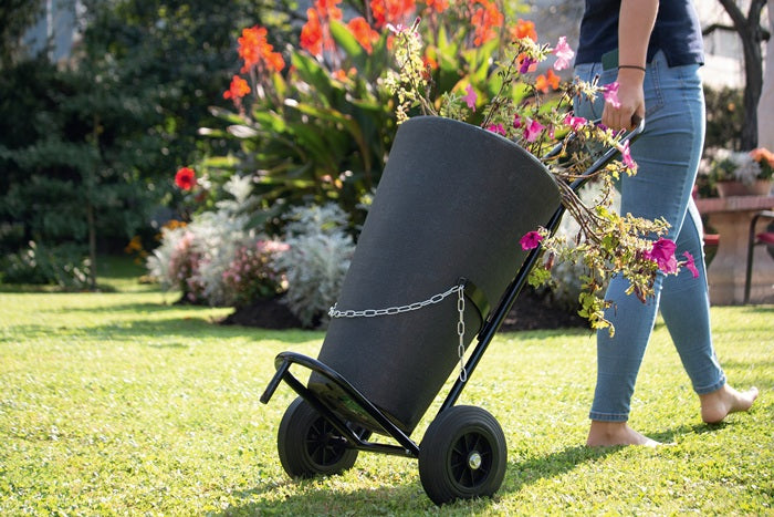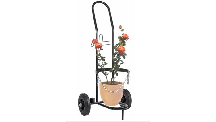 con prácticos soportes para la manguera de gas y el quemador - cadena ajustable para asegurar la bombona - ruedas robustas con neumáticos de caucho macizo