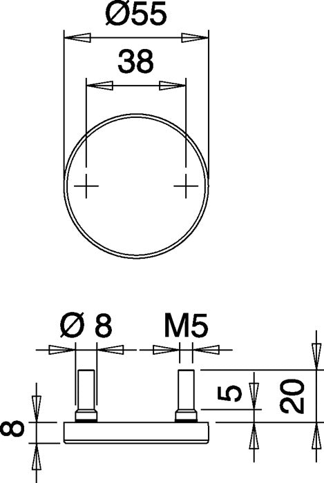 redondo - sobre subestructura de acero - de acero inoxidable - roseta Ø 55 mm - roseta grosor 8 mm - distancia entre levas 38 mm - atornillado invisible - para grosor de puerta 40-65 mm - WC para grosor de puerta 40-48 mm