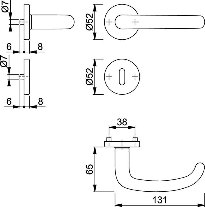 Juego de roseta para puerta interior según DIN EN 1906 (categoría de uso 3) - Tiradores de puerta con conexión rápida de pasador (con pasador macizo de 8 mm) para grosor de puerta de 37 - 42 mm - Roseta con subestructura de plástico, muelle de retorno y levas de apoyo - Fijación oculta, continua - Lados alternos incl. tornillos multiusos - Dirección de tope DIN izquierda / derecha