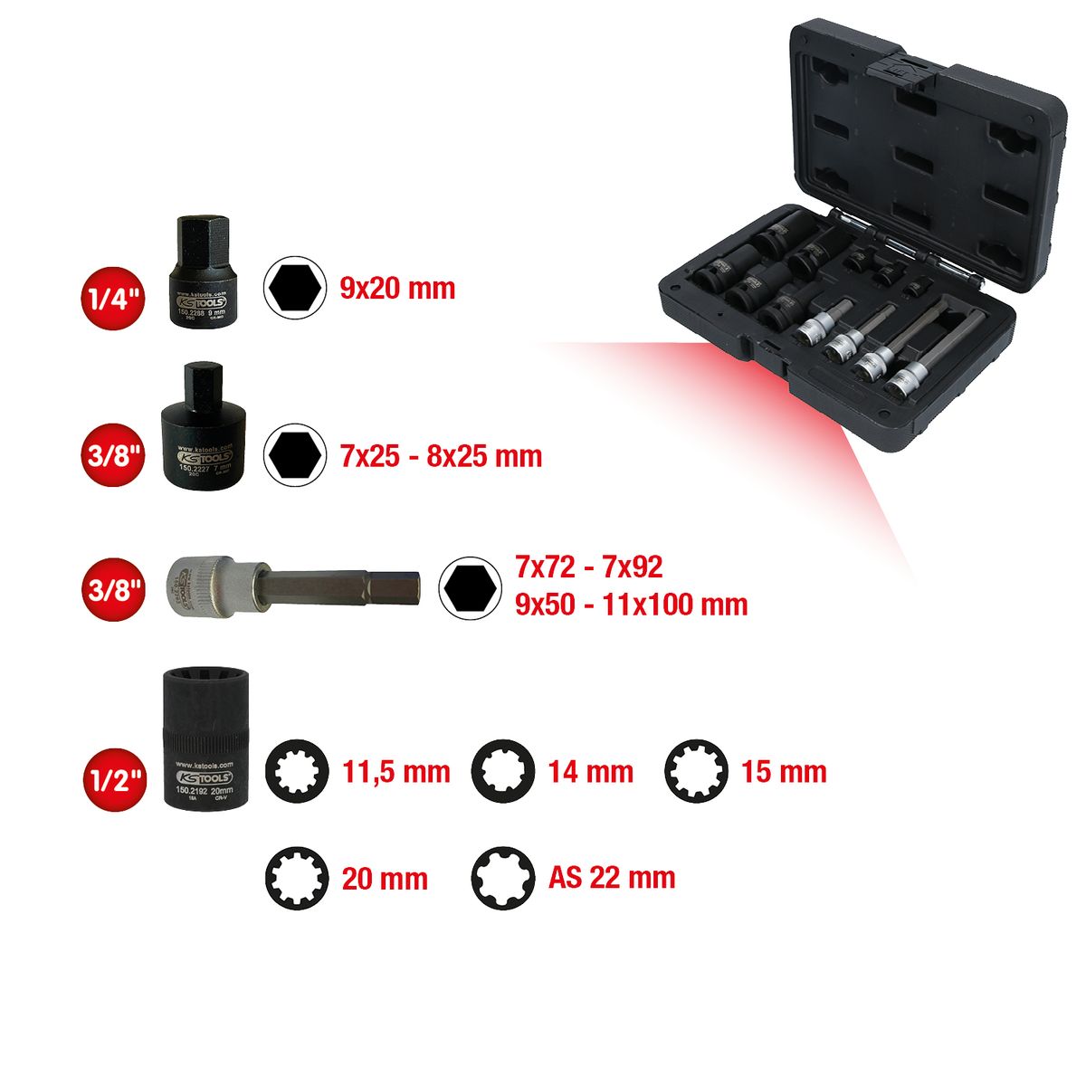 Juego de Ilaves de vaso especiales para la unión atornillada de la pinza de freno, 12 pzs - Juego de Ilaves de vaso especiales para la unión atornillada de la pinza de freno