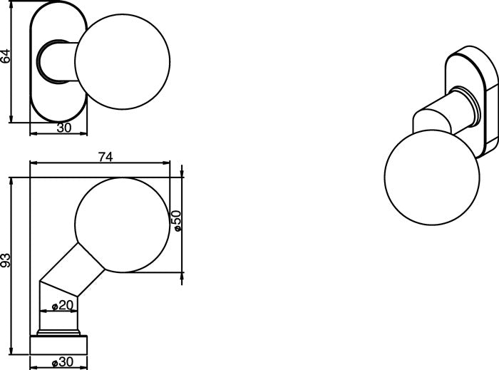 pour portes profilées - incliné, fixe sur rosace - fixe - avec fixation invisible - logement M6 - livré sans tige ni vis