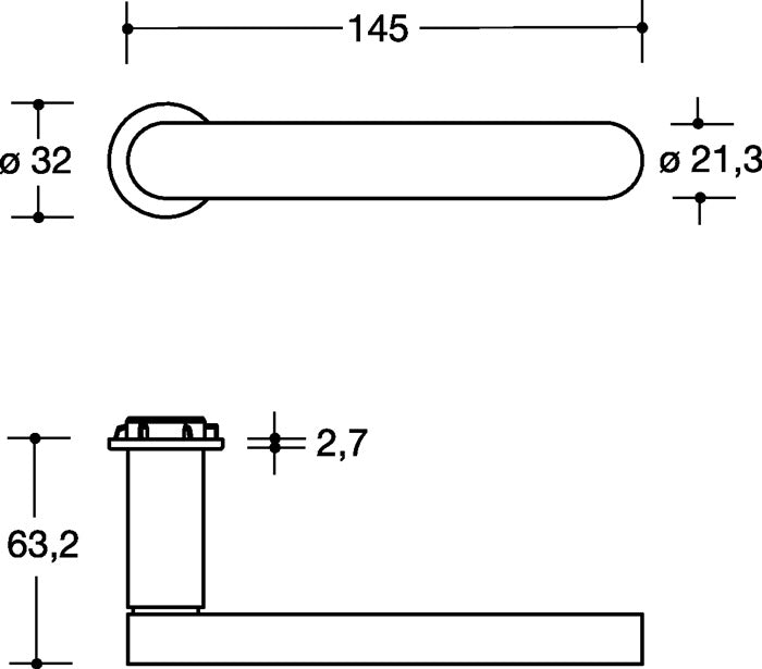 Garniture de pièce avec rosaces à clés · avec rosace à poignée plate, capuchon en acier inoxydable, poignée de porte modèle 271XAM en forme de L en acier inoxydable (1.4301), tige carrée 8 mm, pour l'Autriche 8,5 mm, avec filetage trapézoïdal · Fixation de la poignée dans un roulement à pression et un polyamide -Douille à coulisse · avec rosace de clé 306XAM, 32 x 47 mm · Montage des douilles à pression à l'aide d'un écrou de fixation à filetage trapézoïdal SW 19 avec une clé polygonale SW 19 · Le montage est recommandé sur les portes de séjour et intérieures émoussées et à feuillures avec plaque de recouvrement HDF et couches intermédiaires en copeaux tubulaires - ou insert à copeaux complet ou qualité supérieure