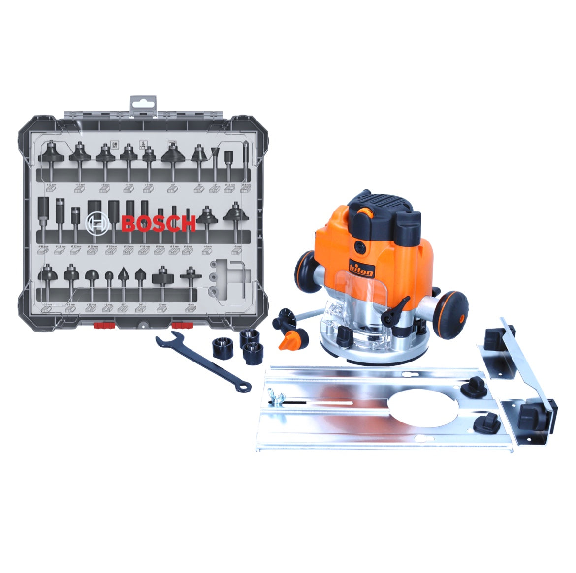 Triton JOF001 Défonceuse 1010 watts course 59 mm + Butée + Jeu de fraises - 30 pièces