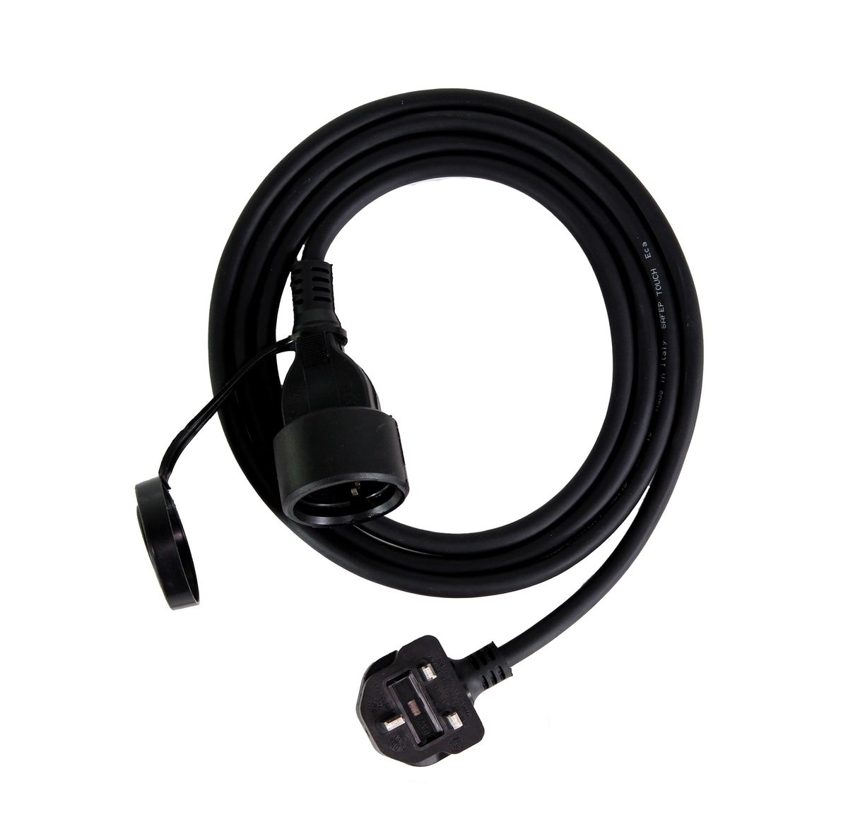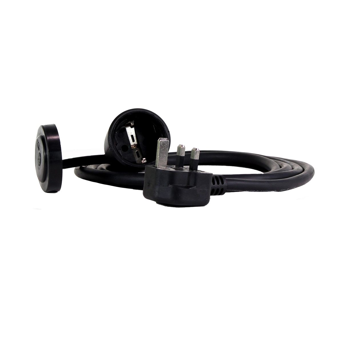L'adattatore di presa permette l'uso di dispositivi tedeschi sulla presa inglese. Il cavo è extra spesso per essere resistente alle sollecitazioni esterne. La lunghezza è di 2 metri, quindi la maggior parte delle applicazioni sono garantite.