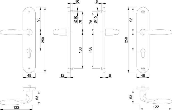 per porte terminali - protezione antitrapano in acciaio temprato nella zona del cilindro - ferramenta intercambiabile con pomolo disassato - fisso (rimontabile) - con attacco rapido a perno - attacco a vite visibile ad alta resistenza - perforazione PZ - incluso materiale di fissaggio M 6 - direzione della battuta DIN sinistra/destra - classe di resistenza KNS