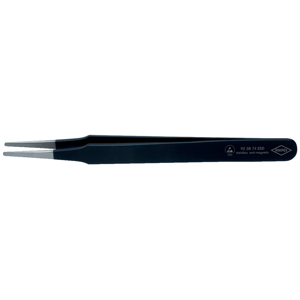 Rivestimento ESD: nero antiriflesso, con una resistenza superficiale di circa 105 ohm - Punte spazzolate antiriflesso - Superfici di presa smerigliate per una presa ottimale - Acciaio al nichel-cromo, inossidabile, antimagnetico (18/10)