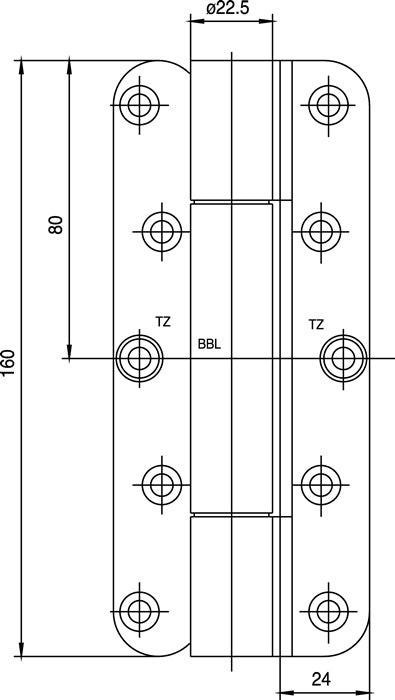 per porte a battente su telai a blocco - valore di carico 160 kg - perno a vite interno, antirotazione - cuscinetti a strisciamento assiali/radiali a scomparsa, esenti da manutenzione - lunghezza rulli 160 mm - Ø rulli 22,5 mm - utilizzabile su DIN sinistra/destra