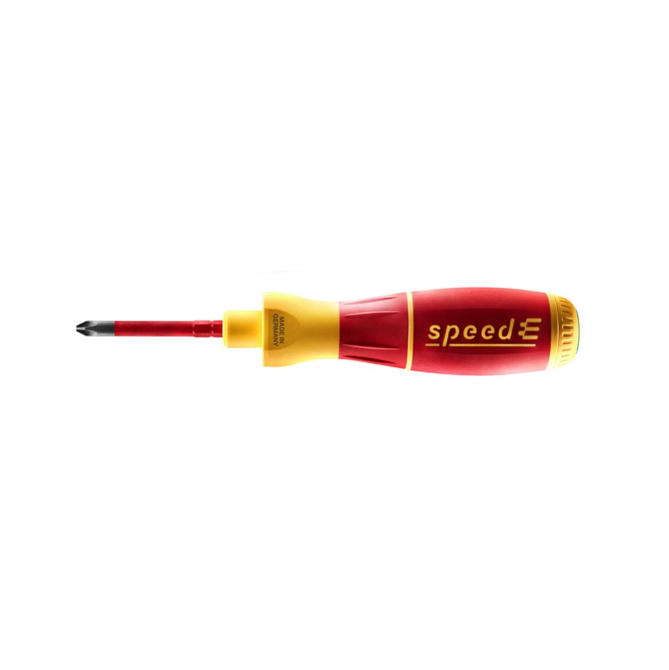 L'avvitatore fornisce un supporto elettronico per viti, che libera l'utente dalla fatica di avvitare, ma allo stesso tempo lascia all'utente un delicato serraggio manuale. La speedE® fa girare la vite fino a 0,4 Nm. Tuttavia, questa forza può essere aumentata manualmente fino a 8 Nm e gradualmente limitata con gli adattatori easyTorque. La nuova tecnologia raddoppia la velocità di avvitamento. Le funzioni di protezione del materiale garantiscono il pieno controllo della forza di serraggio nonostante l'elevata velocità di serraggio. Inoltre, un potente LED è installato per fornire una luce sufficiente nell'area di lavoro diretta. Il cacciavite è stato testato da VDE ed è adatto per lavorare fino a 1.000 volt. Si possono facilmente eseguire fino a 800 avvitatori per ogni carica della batteria. Lo speedE® è particolarmente adatto per viti filettate e processi di avvitamento sensibili.