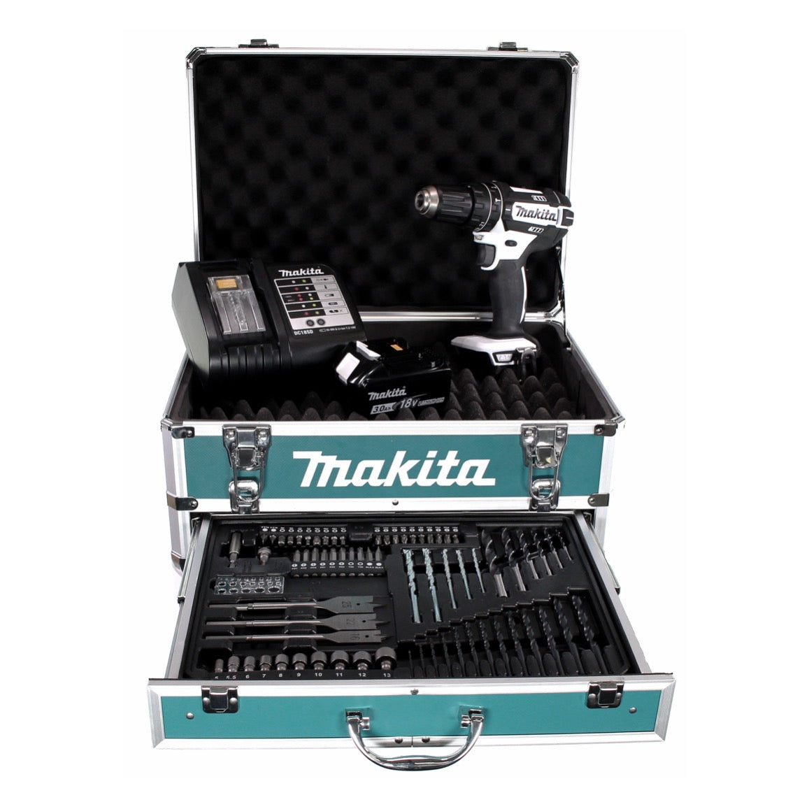 Makita DHP 482 W SFX4 Akku Schlagbohrschrauber 18V 62Nm + 1x Akku 3,0Ah + Ladegerät + 70tlg. Bit Bohrer Set + Koffer