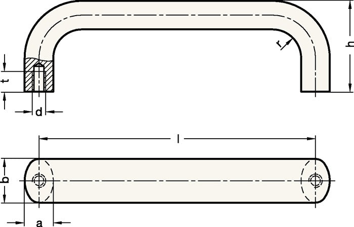 - Uchwyt pałąkowy GN 565 l 120 ± 0,25 mm t min. 10 mm h 49 mm