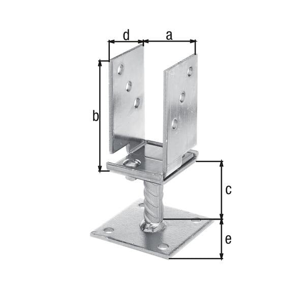 Ausführung: breitenverstellbar · geeignet für Holzpfostenstärken von 71 bis 131 mm · Material: Stahl roh, Oberfläche: galvanisch verzinkt, dickschichtpassiviert