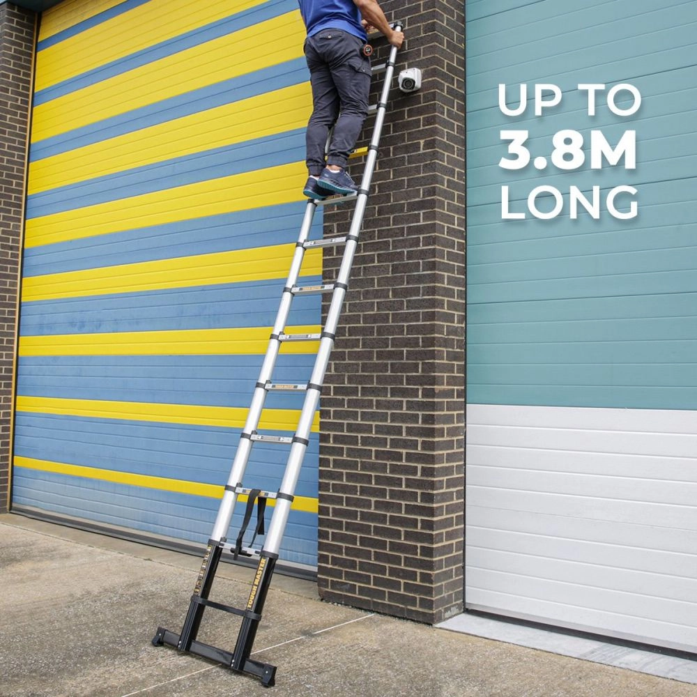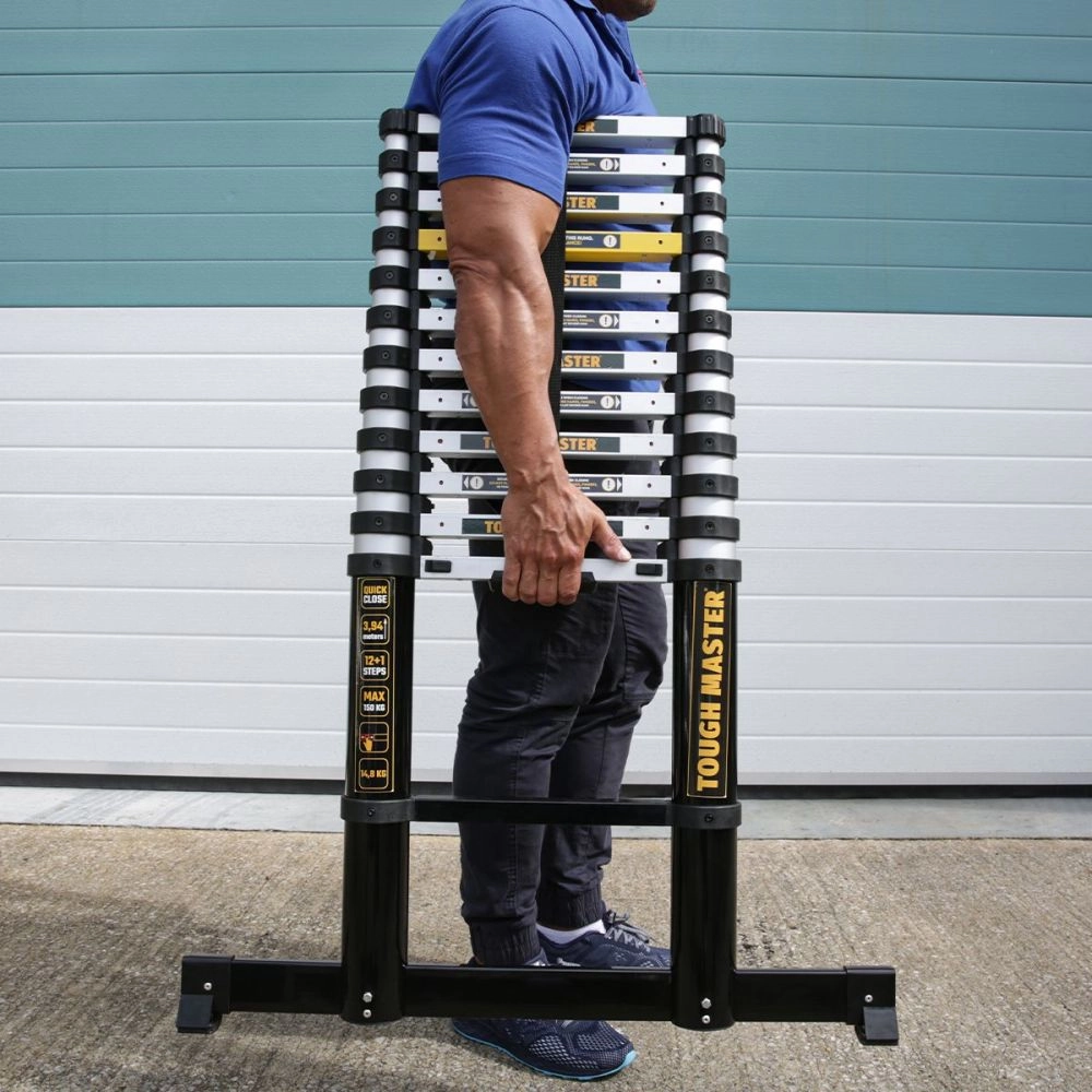 TOUGH MASTER 3,8 m hohe ausziehbare Teleskopleiter aus 1,8mm dickem Aluminium, robust, rutschfeste gummifüße, zusammengeklapt 1,18 m ( ML-1004A )