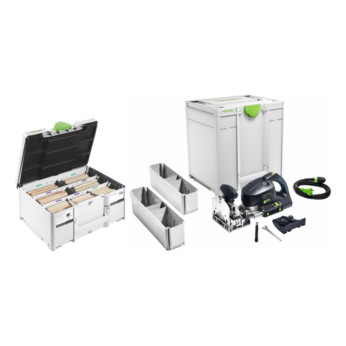 Festool DOMINO XL DF 700 EQ-Plus Dübelfräse 720 W ( 576426 ) + 128 tlg. Dübel Sortiment ( 576792 )