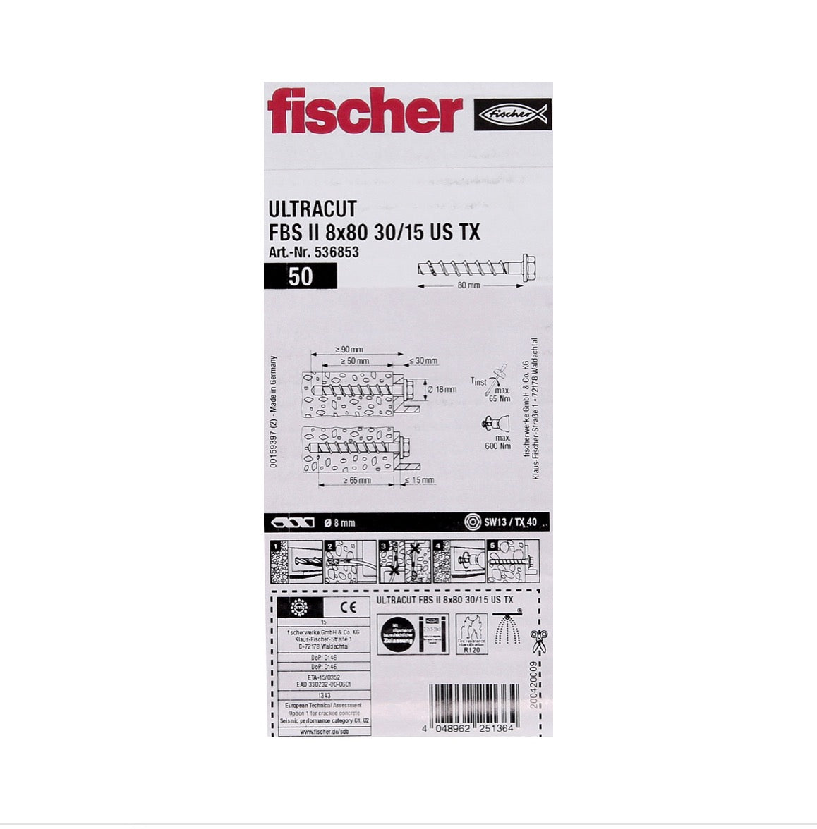 - 1x Fischer ULTRACUT FBS II Betonschraube 8x80mm 30/15 100 Stk. ( 536853 )