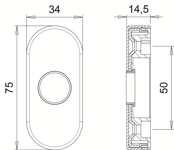 für Rahmentüren · Höhe 75 mm · Breite 34 mm · Schildstärke 14,5 mm · verdeckte Aufschraubbefestigung · verwendbar mit allen Türdrückern und Lochteilen · Lieferung ohne Schrauben