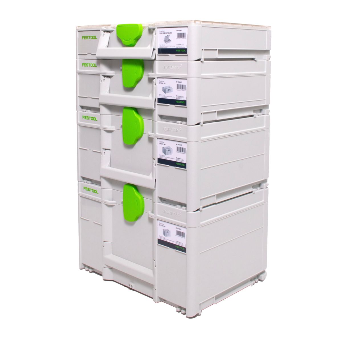 Festool Systainer Set SYS3 M 237 ( 204843 ) + SYS3 M 187 ( 204842 ) + SYS3 M 137 ( 204841 ) + SYS3 ORG M 89 Organizer ( 204853 ) koppelbar