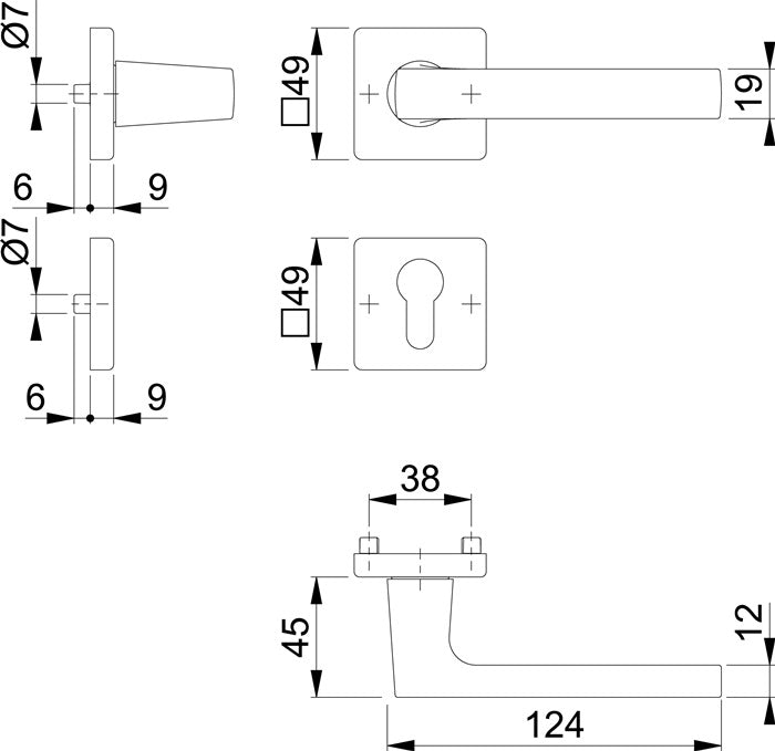 Messing-Rosetten-Türgriff-Garnitur mit Schlüsselrosetten für Innentüren · geprüft nach DIN EN 1906: 37-0140A (Gebrauchskategorie 3) · Lagerung: Türgriffe lose · Rückholfedern rechts/links verwendbar · wartungsfreie Gleitlager · Verbindung: HOPPE-Schnellstift mit HOPPE-Vollstift (Loch-/Lochteil) · Unterkonstruktion: Kunststoff, Stütznocken · Befestigung: verdeckt, durchgehend, wechselseitig, Mehrzweckschrauben