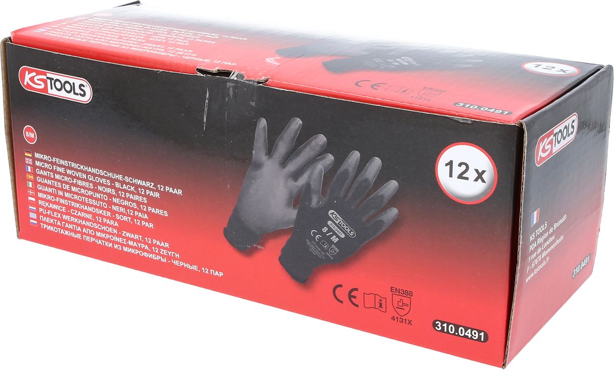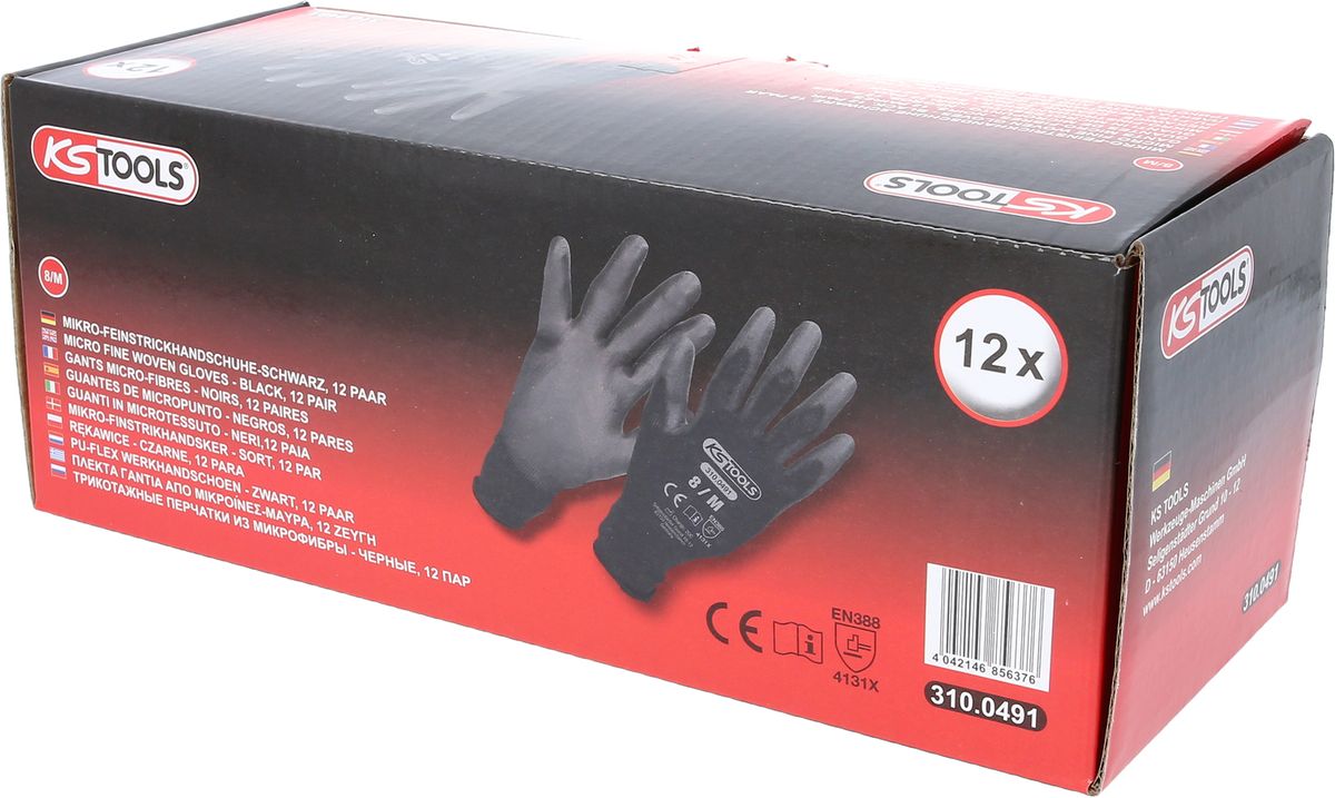 KS TOOLS Mikro-Feinstrickhandschuhe-schwarz, 8, 12 Paar ( 310.0491 )
