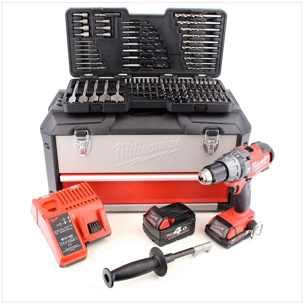 Milwaukee MBOX 100 M18 CPD 421 C 18 V Akku Schlagbohrschrauber mit 2xLi-Ion Akku, Lader, Koffer, 100 tlg. Bit-Set