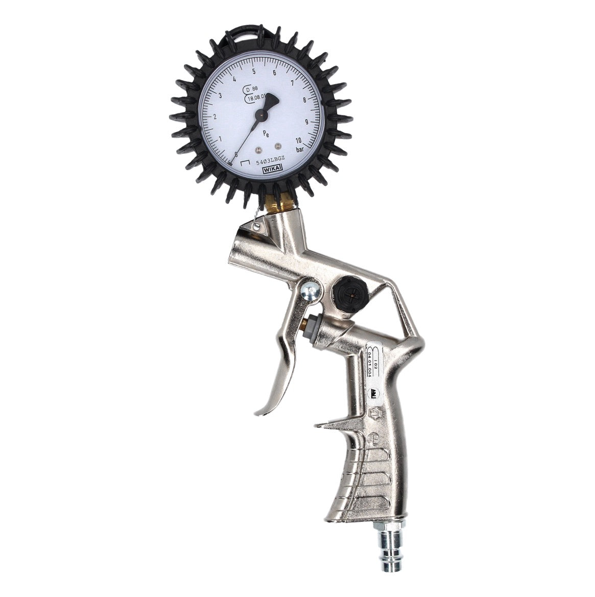 Die Firma Rodcraft bietet hier mit dem RF02G einen Reifenfüller mit geeichtem Manometer und einem 500 mm langen Schlauch mit Momenstecknippel. Der Reifenfüller ist für 0 - 10 bar ausgelegt und verfügt über ein 60 mm Manometer mit Stoßschutz. Der Hebel ist zum Befüllen des Reifens und mit dem Druckknopf lässt sich die Luft wieder ablassen. Rodcraft ist ein führender Hersteller für Werkzeuge im Bereich Druckluft und Werkstattausrüstung, der sich durch eine lange Tradition und hohe Verarbeitungsqualität auszeichnet.
